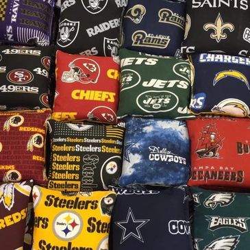 ALL 32 NFL TEAMS, COLLEGE, MLB, NCAA AND VARIOUS LOGOS. SOLID COLOR BAGS ALSO AVAILABLE.